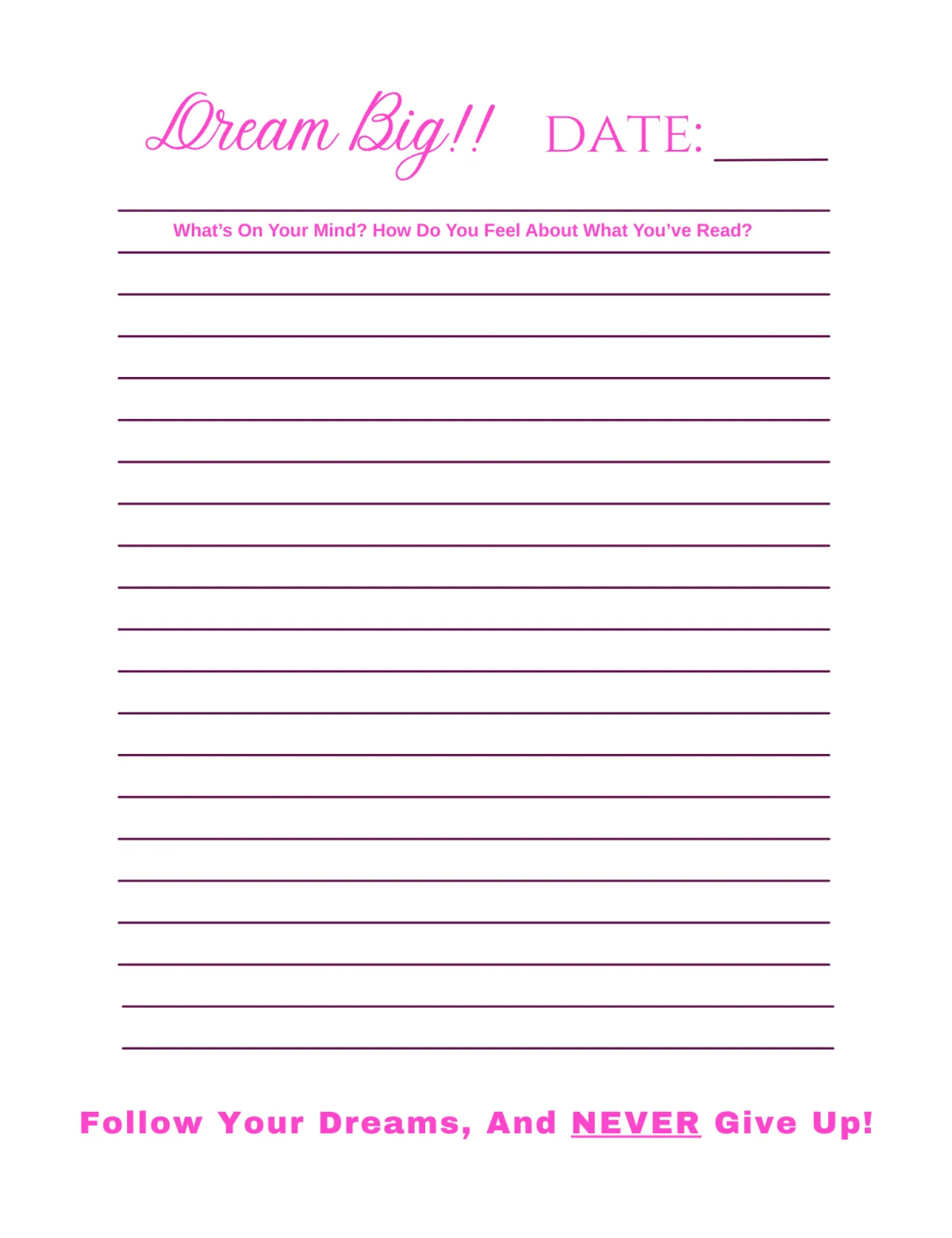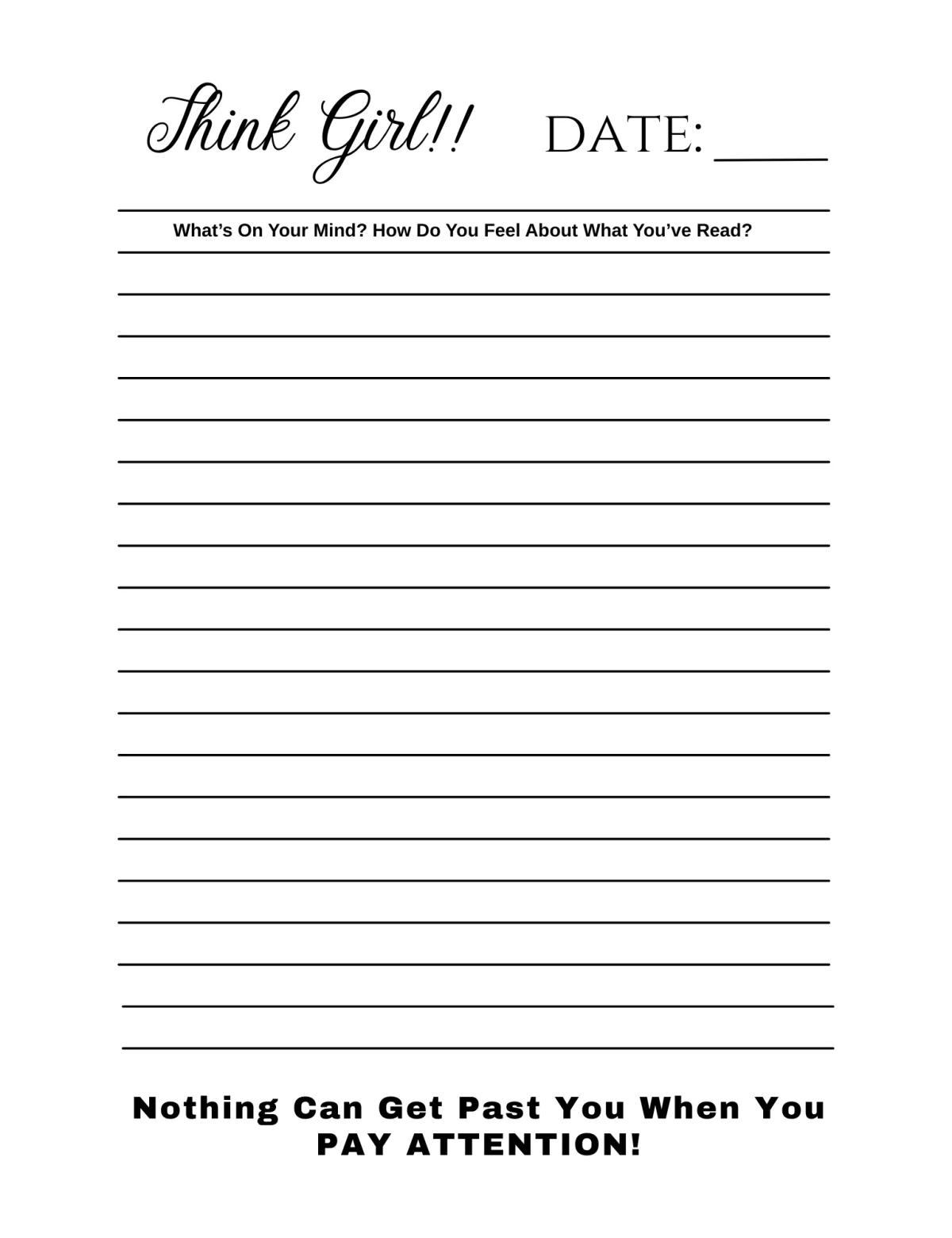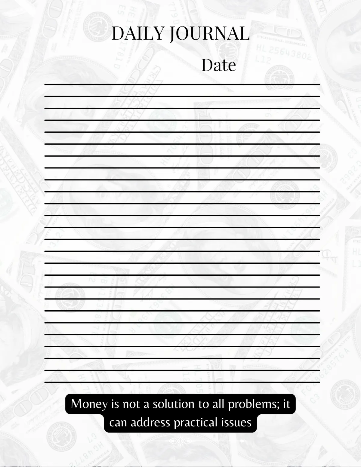 Multi-lined journal spaced pages for vent writing and further stress relief.