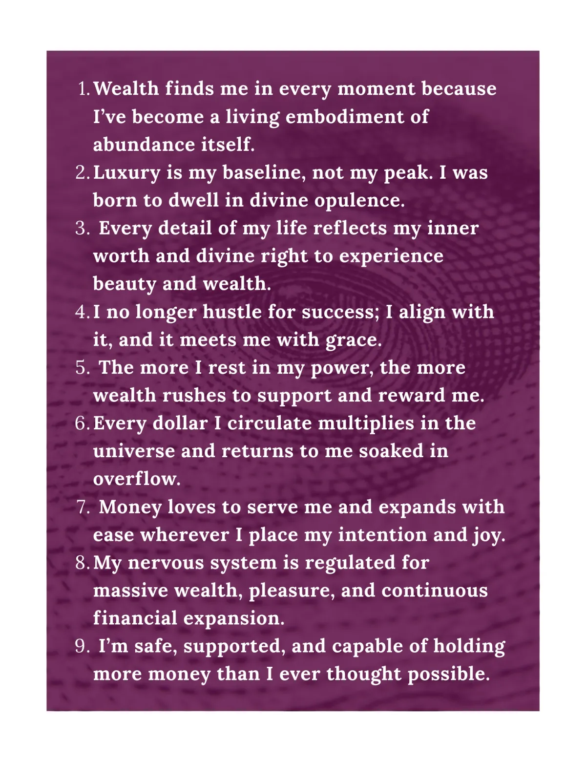 Explore Money Mindset Limitation Reversing Affirmations that combat all the limiting beliefs you may have surrounding money to open your perspective to a more abundant mindset conducive for wealth attraction.