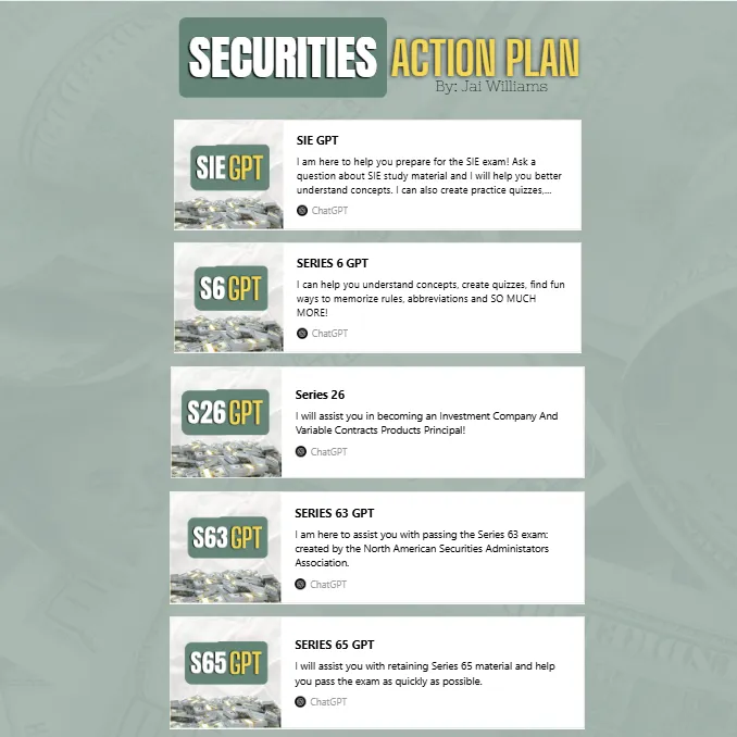 Securities Action Plan and Accountability Partnership is a structured, results-focused exam mastery guided study system designed for aspiring and current financial professionals preparing for exams like the SIE, Series 6, 63, 65, and 26. It’s built for individuals who are serious about passing efficiently, not just studying endlessly.