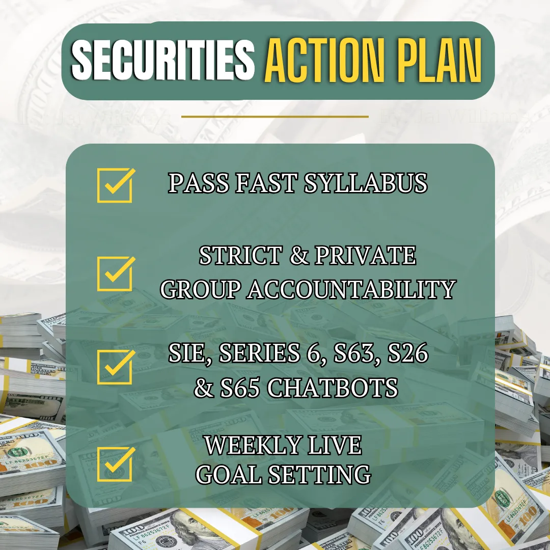 The Action Plan is a step-by-step system based on the exact strategy used by our founder to pass multiple securities exams on the first attempt within seven months. It removes guesswork and shows you exactly what to study, when to study, and how to retain it.